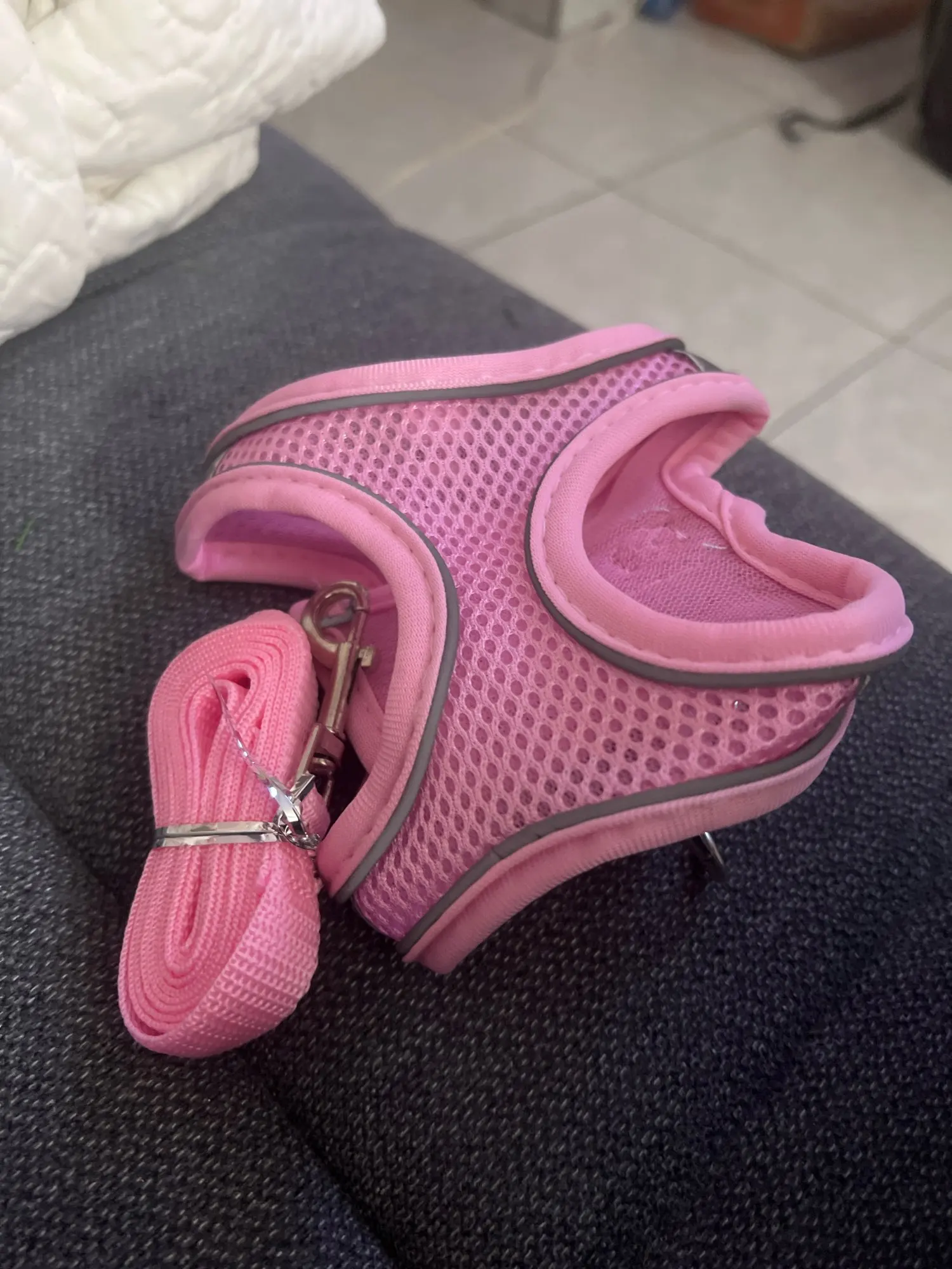 A soft, secure harness designed to keep cats safe during indoor or outdoor walks. Made with comfortable suede material and reflective detailing for better visibility, it offers a snug fit without restricting movement.